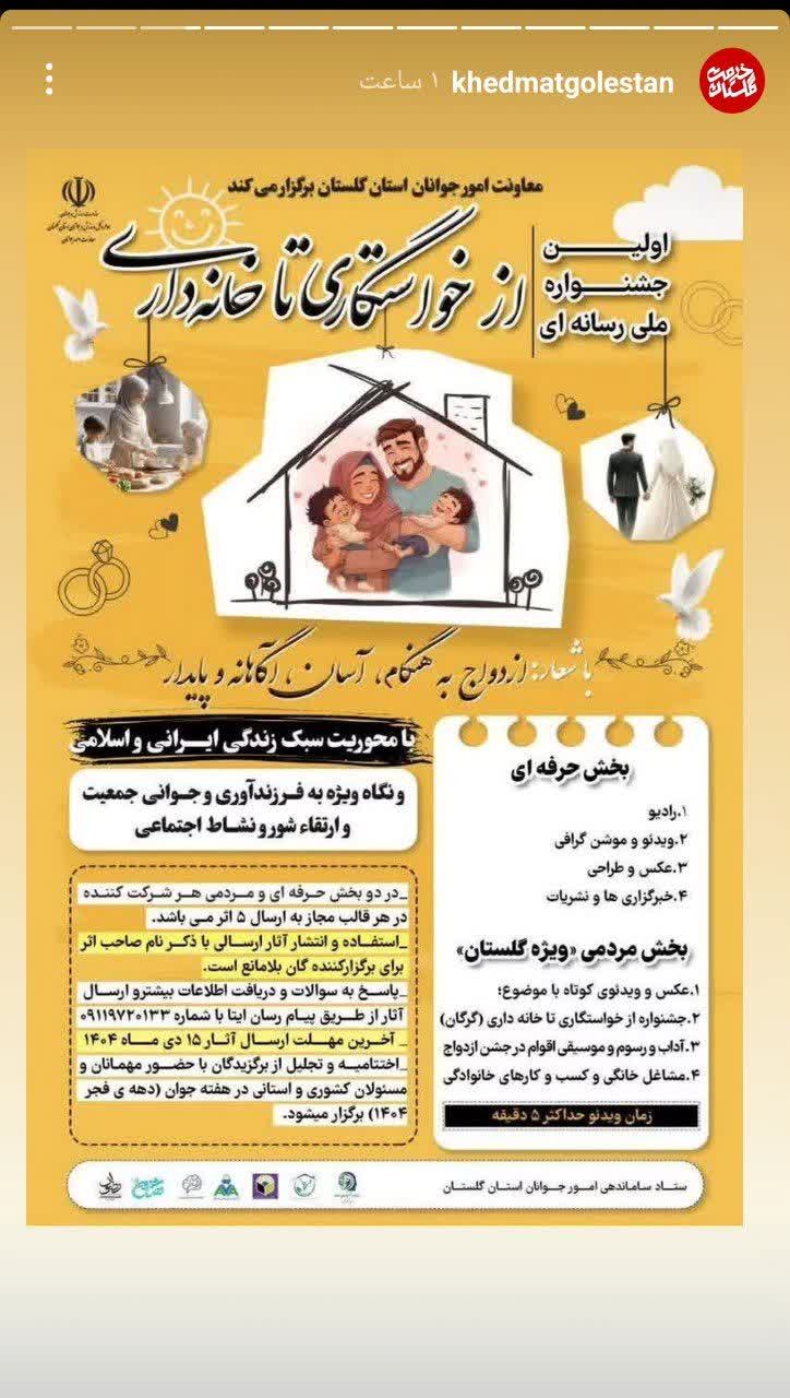 سرپرست معاونت امورجوانان اداره کل ورزش و جوانان استان گلستان از برگزاری جشنواره «از خواستگاری تا خانهداری» خبر داد.