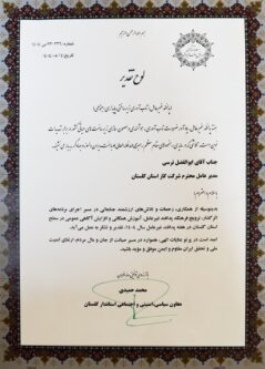 در راستای تحقق اهداف پدافند غیرعامل و به پاس همکاریها و تلاشهای مؤثر در ترویج فرهنگ پدافند غیرعامل، آموزشهای همگانی و افزایش آگاهی عمومی در